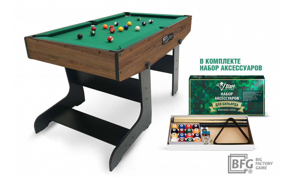 Еще одним преимуществом данной модели является удобный механизм складывания, позволяющий без особых усилий быстро сложить или разложить бильярдный стол. Благодаря складной конструкции опорных ножек, бильярдный стол при хранении занимает минимум пространства. Компактные размеры делают транспортировку и перемещение стола очень удобным.